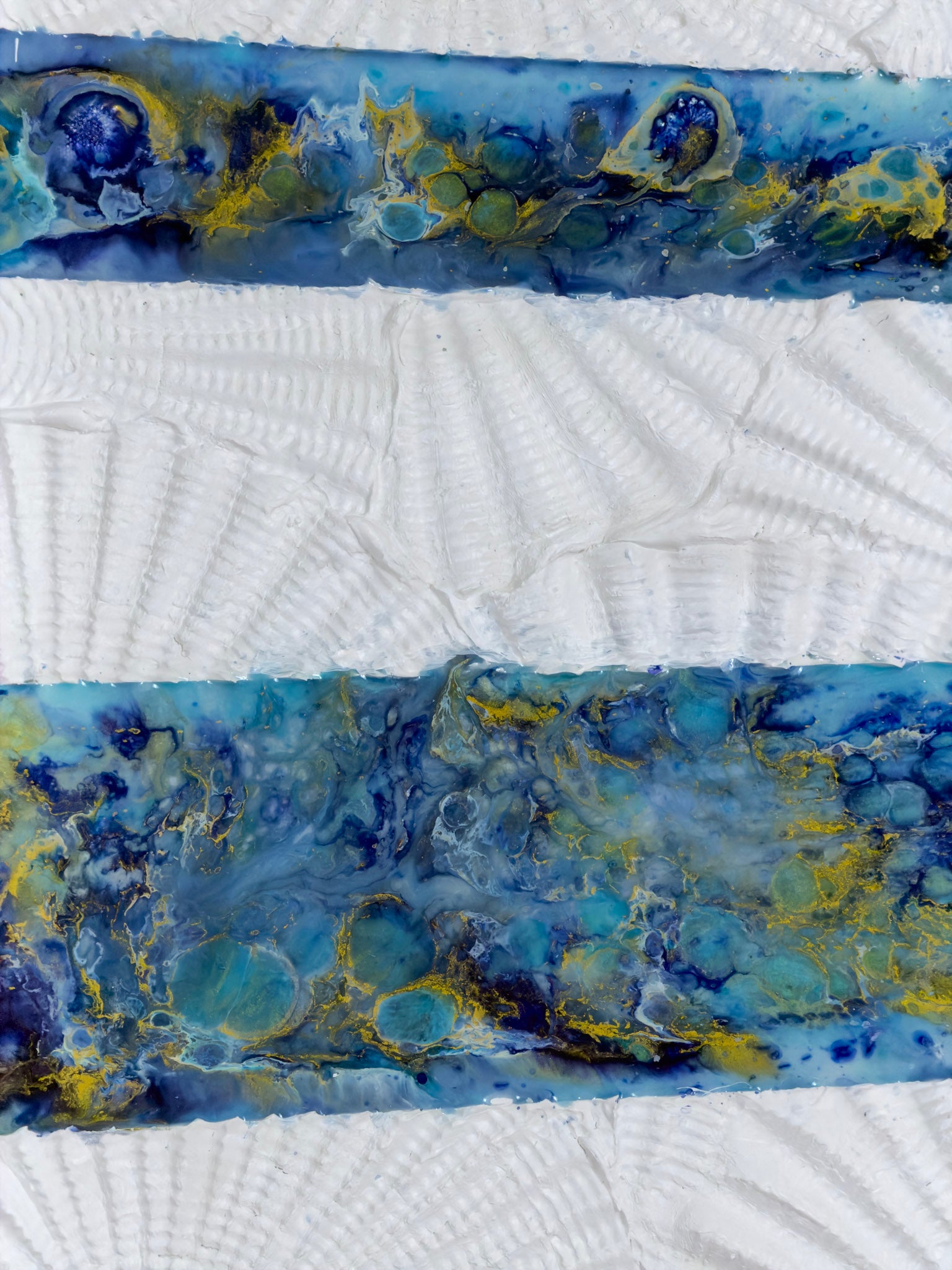 “The Ocean Within I” is part of my Inner Ocean series and was created as a reflection on internal balance. I’ve always been an intense and driven person. My mind moves quickly, I think deeply, and I tend to carry a lot internally. What consistently brings me back into balance is not more stimulation or distraction, but depth and presence a quiet space to breathe and reset. This piece is an abstract expression of how the ocean feels inside. The moment your body softens, your breath slows, and you realize that everything is actually okay. There is visible structure in this work because calm does not come from chaos. It comes from balance, intention, and grounded ease. While the surface carries movement and texture, the composition remains centered and steady. This work was created for people who live full lives yet value clarity and quiet confidence in their space. It works beautifully in refined, minimalist, or architectural interiors, bedrooms, living spaces, or private offices where presence matters.